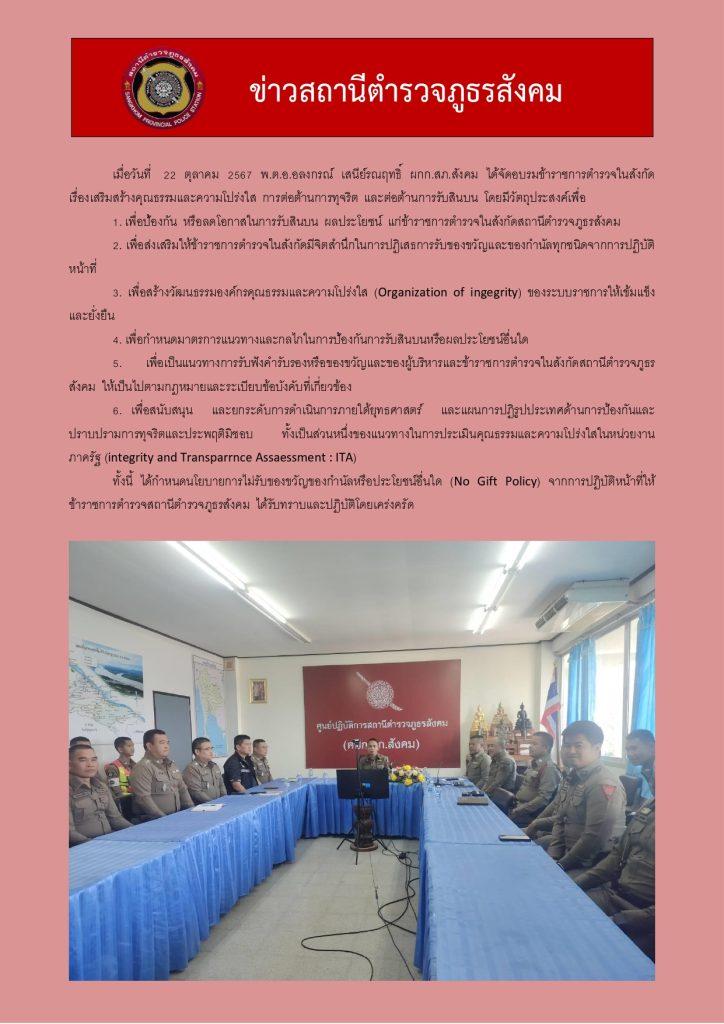 การมีส่วนร่วมของหัวหน้าสถานีตำรวจภูธรสังคม ในการต่อต้านการทุจริต/การรับสินบน