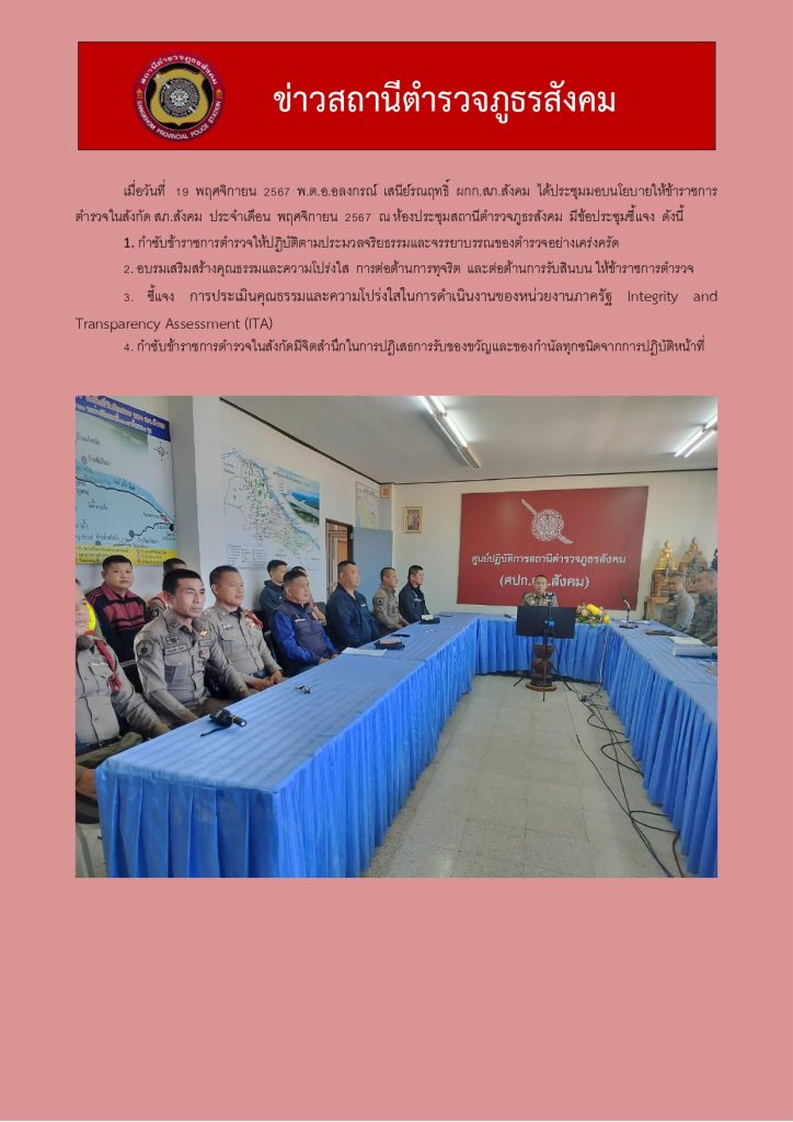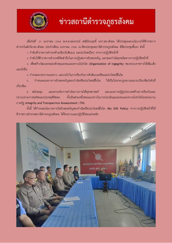 รอง.สว.(สส).สภ.สังคม ปฏิบัติหน้าที่ร้อยเวร20ประจำวันนี้