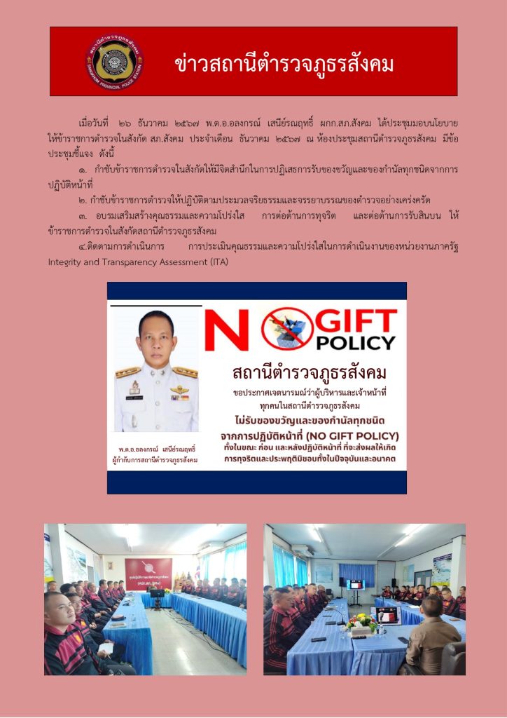 รอง.สว.(ป).สภ.สังคม ปฏิบัติหน้าที่ร้อยเวร20 พร้อม ว.30 ว.4 ออกตรวจร้านทองในพื้นที่ประชาสัมพันธ์ให้คำแนะนำเฝ้าระวังและการป้องกันเหตุในช่วงราคาทองที่สูงขึ้นอาจจะเป็นจุดสนใจของผู้ไม่หวังดี